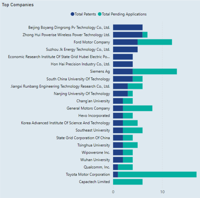 The chart presents data on the patent activities of leading corporations in the VR domain, specifically comparing the number of patents to the number pending applications. This data provides a snapshot of VR technology patenting from technology giants. The following are highlights from this chart: