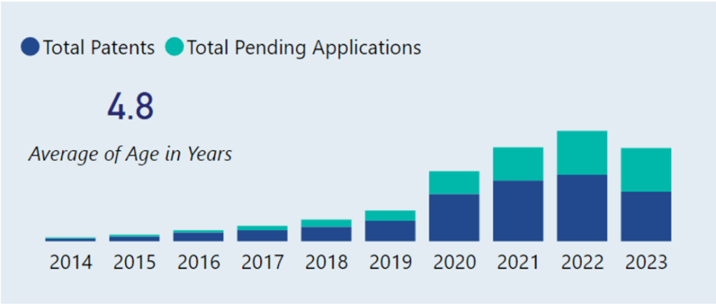 Based on data provided by the Harrity Analytics Patent Pulse™ Report on VR Hardware, the trend in VR hardware patent publications has experienced a consistent increase up to 2022, after which it levels off. Over the past three years, there has been an annual growth of 5.8% in patent publications. An increase in patent filings typically reflects a period of innovation, as companies seek to secure legal protection for their new inventions. The data suggests progress in VR hardware development, pointing to the technology’s ongoing expansion and adoption.
